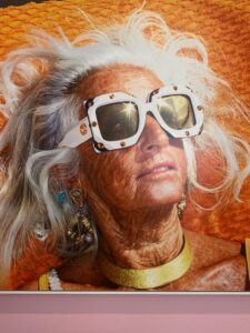 Les filles s’insèrent avec moi dans la file d’attente. Le musée n’est pas encore ouvert mais les amoureux de la photographie sont déjà nombreux. Martin Parr a eu le temps, avant sa mort, de régler tous les détails de cette rétrospective avec le commissaire de l’exposition. Celle-ci s’ouvre sur la photo d’une femme âgée s’offrant aux rayons d’un soleil cannois. Sa peau est aussi bronzée que ridée. Elle porte de larges lunettes dont la monture blanche est incrustée de pierres dorées, de grosses boucles d’oreille. Ses cheveux blancs reposent sur une serviette orange. Cette femme me fait penser à Méduse qui aurait, avec les lunettes, trouvé le moyen de contrer les rayons du soleil réfléchis par le bouclier de Persée. Le ton est donné: l’humour est de mise et si le regard de Martin Parr vise à documenter l’époque qui est la sienne, il ne veut pas porter de jugement. Il ne donne pas de leçon. Il pointe avec un mélange d’ironie et d’empathie les dérives de la consommation de masse, du sur-tourisme. Il utilise des couleurs qui rappellent celles des appareils Kodak.