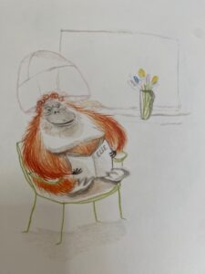 Les filles ont envie d’aller se promener dans la Ménagerie, l’un des plus anciens zoos au monde, fondé en 1794 à l’initiative de Bernardin de Saint-Pierre. Nous l’ignorions mais depuis quelques jours, les orangs-outans ont enfin un espace extérieur avec nids suspendus, plus de 300 mètres de cordage, des agrès de différentes essences, une cinquantaine d’espèces végétales différentes et des bassins à débordement. Quand nous arrivons devant le nouvel espace, quelques habitués n’en ont que pour l’icône de la Ménagerie, la doyenne des lieux qui a eu droit à un documentaire et a un album jeunesse: Nénette. Des visiteurs lui parlent, lui demandent si elle est heureuse dans ce nouveau lieu. Ils échangent aussi entre eux autour d’elle et de ses enfants et petits-enfants. Nénette est née à la fin des années 60 sur l’île de Bornéo. Sa mère a certainement été tuée par des braconniers qui voulaient lui ravir son bébé. Elle est arrivée à Paris en 1972. Elle a eu trois « maris », quatre fils, deux petites-filles et deux arrière-petits-enfants vivant aujourd’hui en Espagne ou aux Pays-Bas.