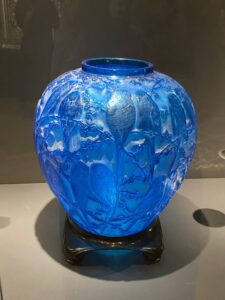 L’exposition est très dense et me permet de découvrir l’existence de la fille de René Lalique, Suzanne, illustratrice, décoratrice d’intérieur, artiste-peintre et créatrice de costumes et décors pour la Comédie-Française. Son père l’a toujours incité à exprimer sa sensibilité artistique. Après son mariage avec Paul Burty Haviland, elle imaginera des services de table pour la maison Haviland. René Lalique et sa fille ont mis leur talent au service de la décoration intérieur des salons des premières classes du paquebot Paris et pour le train Côte d’Azur Pullman Express.