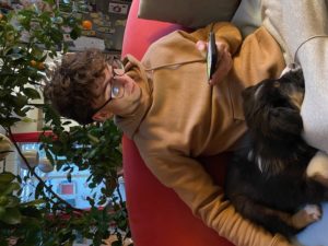 Hier, avant d’aller me coucher, j’ai vu Louis qui écoutait de la musique avec Alto dans les bras. La petite boule de poils dormait profondément. Il devait entendre battre le coeur si plein de bonheur de notre fils. C’est un nouveau chapitre de notre vie de famille qui a commencé à s’écrire. A Noël, Alto fera la connaissance de plusieurs membres de la famille. Joie assurée des deux côtés!