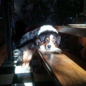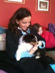 Quand Fantôme a rejoint notre famille voici un peu plus de quinze ans, c’est parce que j’avais dit à Stéphane combien je serais heureuse que nous ayons un chien. La vie à la campagne me pesait souvent et je songeais qu’un chien donnerait du sens à notre existence. Ma soeur et moi avons toujours vécu avec des chiens. Les enfants et le chien grandiraient ensemble. Ils se composeraient une mémoire commune. C’est au retour d’une semaine en Balagne à la Toussaint que Stéphane avait trouvé Florence, une éleveuse extraordinaire vivant à La Ferté-Saint-Aubin. A la tête d’une entreprise d’ambulances, cavalière émérite, Florence, qui aurait aimé être vétérinaire, élevait des bergers blancs suisses et des bergers australiens. A cette époque, les bergers australiens étaient surtout des chiens de travail. Ils n’avaient pas encore accédé au statut de « chien préféré des Français ». Avec les enfants, nous avions été découvrir la portée de Vicky et Bambou dont les parents étaient tous des chiens de troupeau. C’est avec Fantôme que le contact s’était naturellement établi. Florence nous avait expliqué que Fantôme était le dominant de la fratrie, le chiot préféré de sa maman et qu’il serait un animal particulièrement massif.